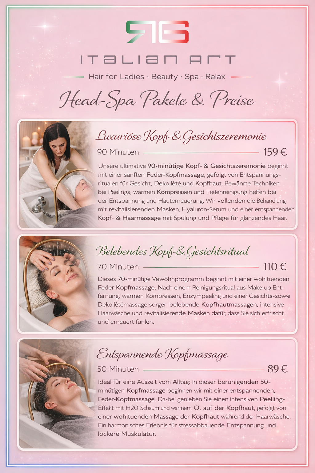 Die kosmetischen Behandlungen bitte immer telefonisch buchen.